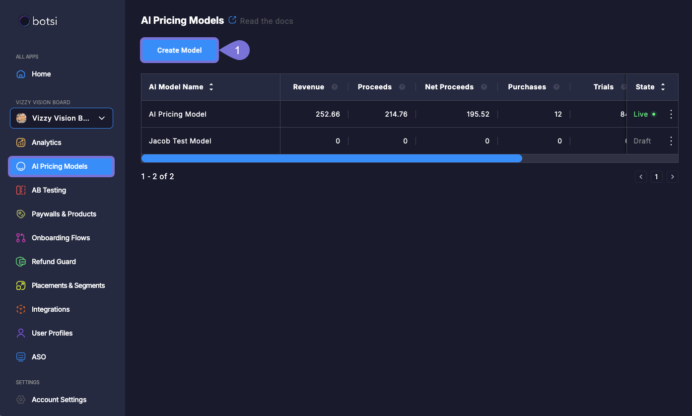 Botsi AI Pricing Model helps you dynamically select and display the most effective paywall for different user segments, aiming to enhance conversion rates. This guide walks you through the prerequisites and configuration steps to get your AI Pricing Model up and running.