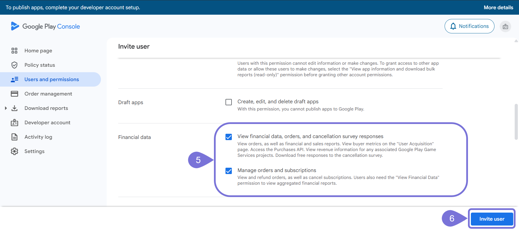 Your Google Cloud service account needs to have the appropriate permissions so Botsi can manage subscriptions and validate purchases.