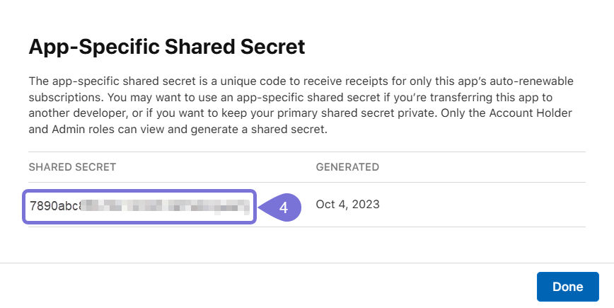 - Get the app-specific shared secret from the App Store Connect and paste it.