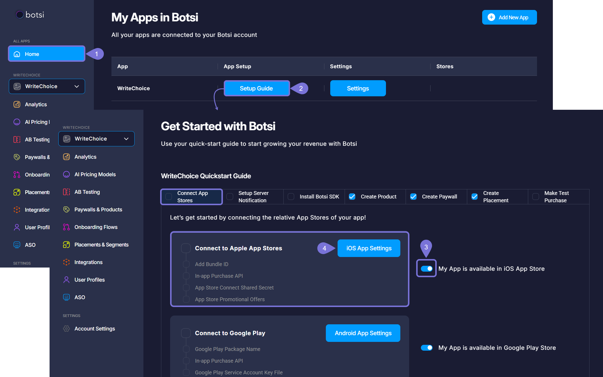 To successfully integrate Botsi with the Apple App Store and manage in-app purchases, it is crucial to configure specific settings within your Apple Developer and App Store Connect accounts. This setup ensures seamless communication between your app and Apple's services, enabling features like subscription management and purchase validation.