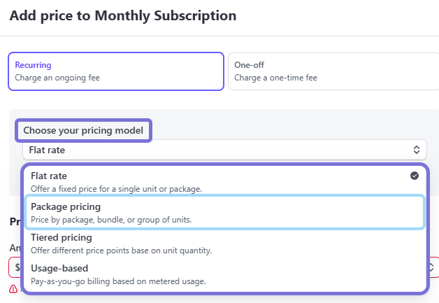 - Recurring: Charges the customer regularly (e.g., weekly, monthly, yearly). Ideal for subscriptions like memberships or software plans.